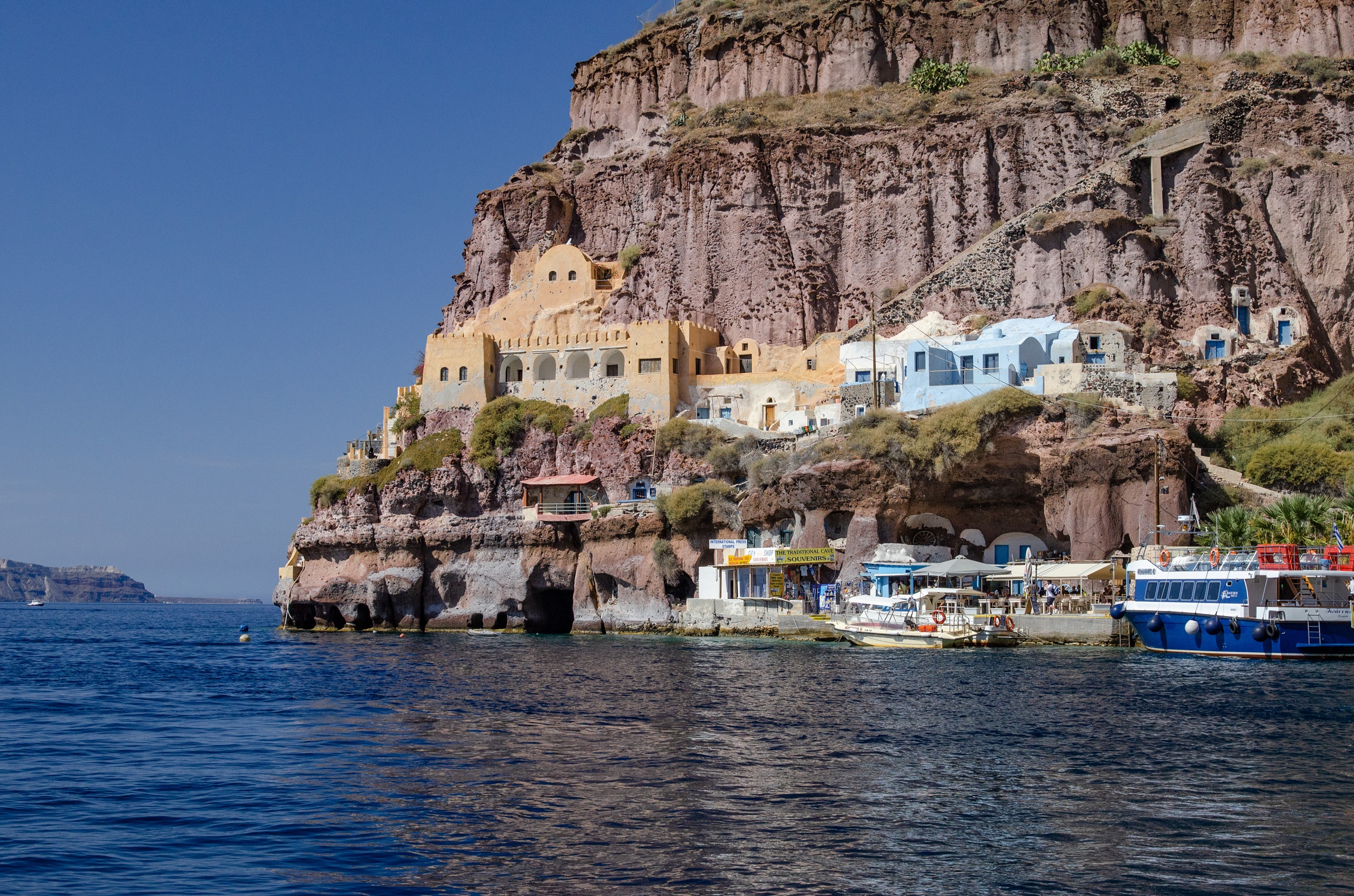 The first part of my trip was a photography tour of the island of Santorini, known to the Greeks as Thera. It was an 8-day trip led by a Houston-based photography instructor. Our group stayed in Fira, the largest town on the island and the capital, but each day brought a new excursion to another part of the island. We visited, not in any particular order, Emporio, Pyrgos, Akrotiri, Ammoudi Bay, Oia, Perissa Beach, the old port town of Gialos, and from there the volcanic island Nea Kameni. And each day we learned as we explored, taking photos wherever we went. Then, we would convene back at the hotel for some constructive critiquing of one or two select photos.