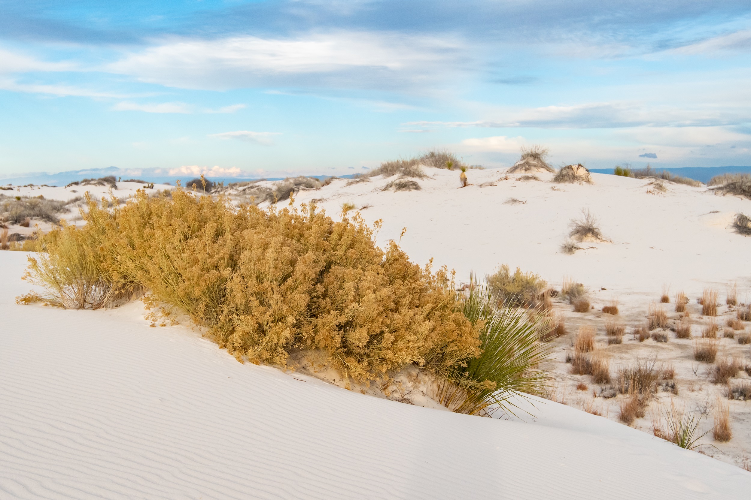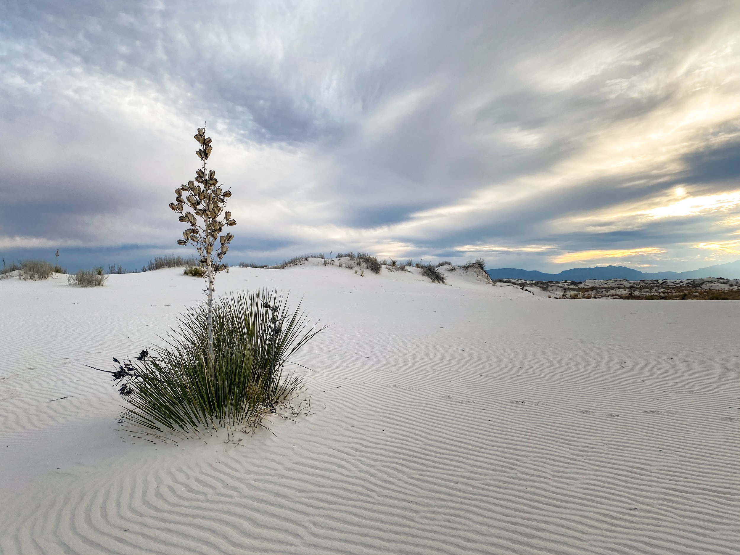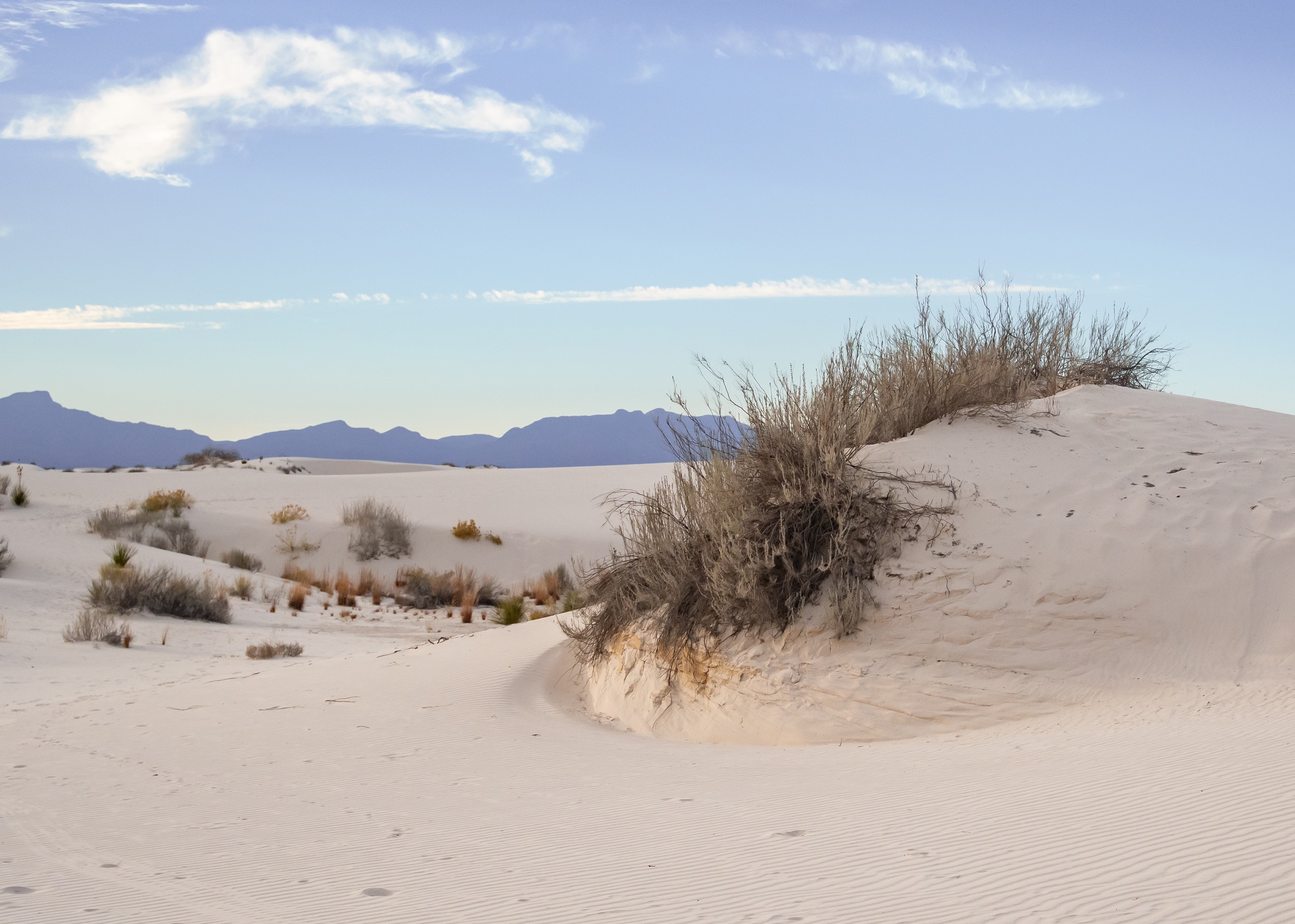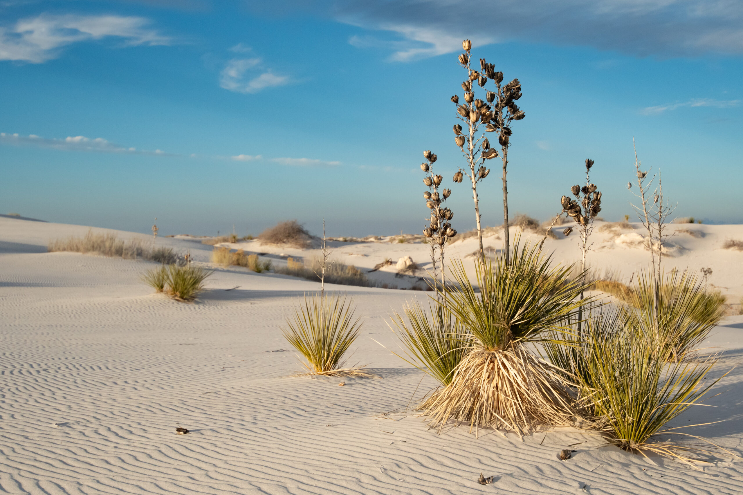 On the way from Santa Fe to Carlsbad, I stopped at White Sands National Park. This park consists of sand dunes made of gypsum and is in fact the world’s largest gypsum dune field. Originally designated a National Monument in 1933, it was re-designated as a National Park just in 2019.