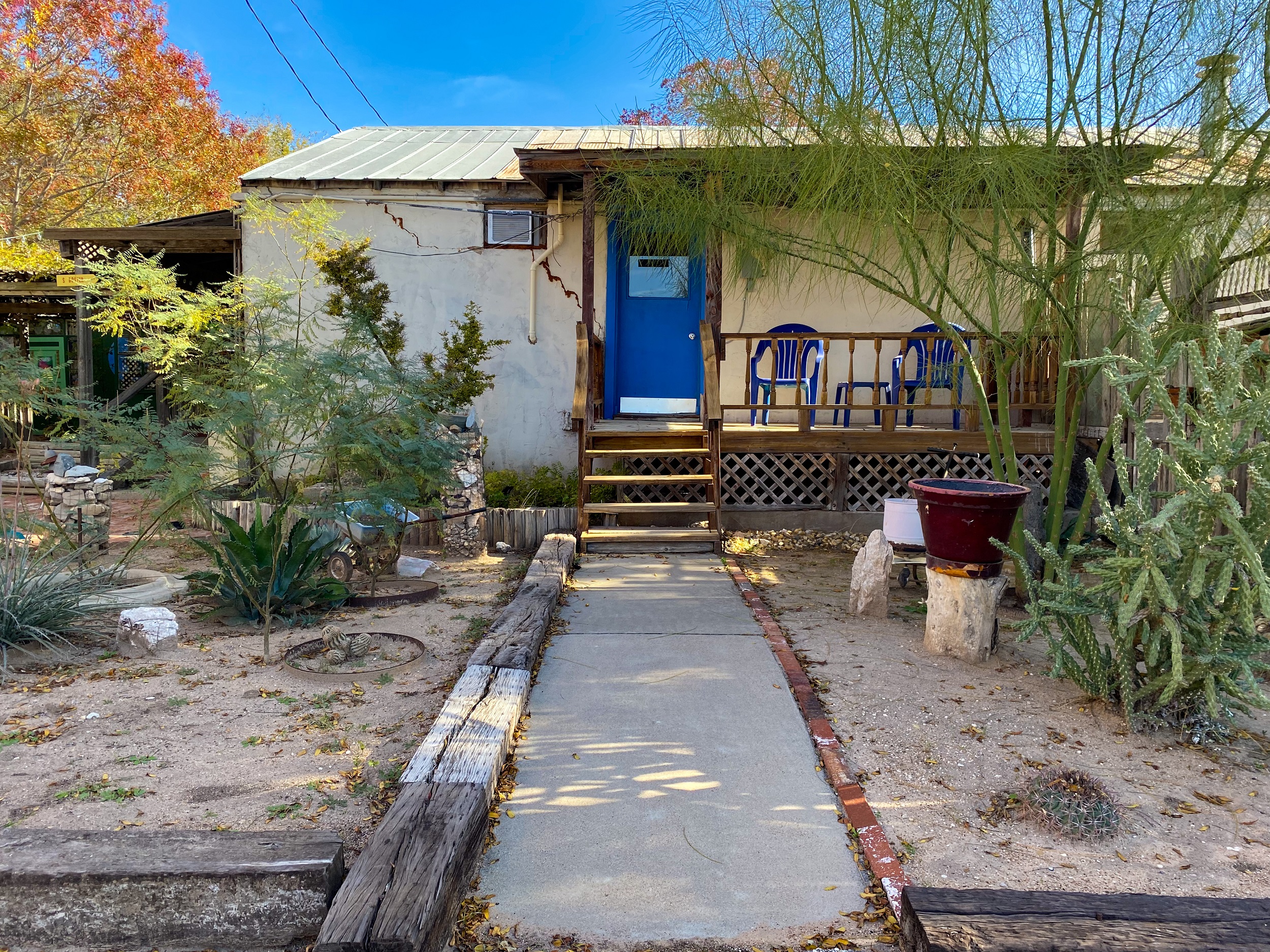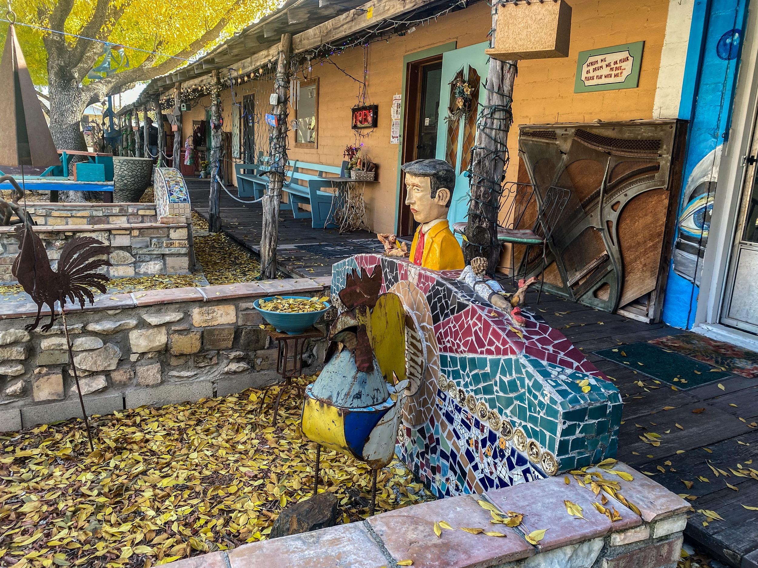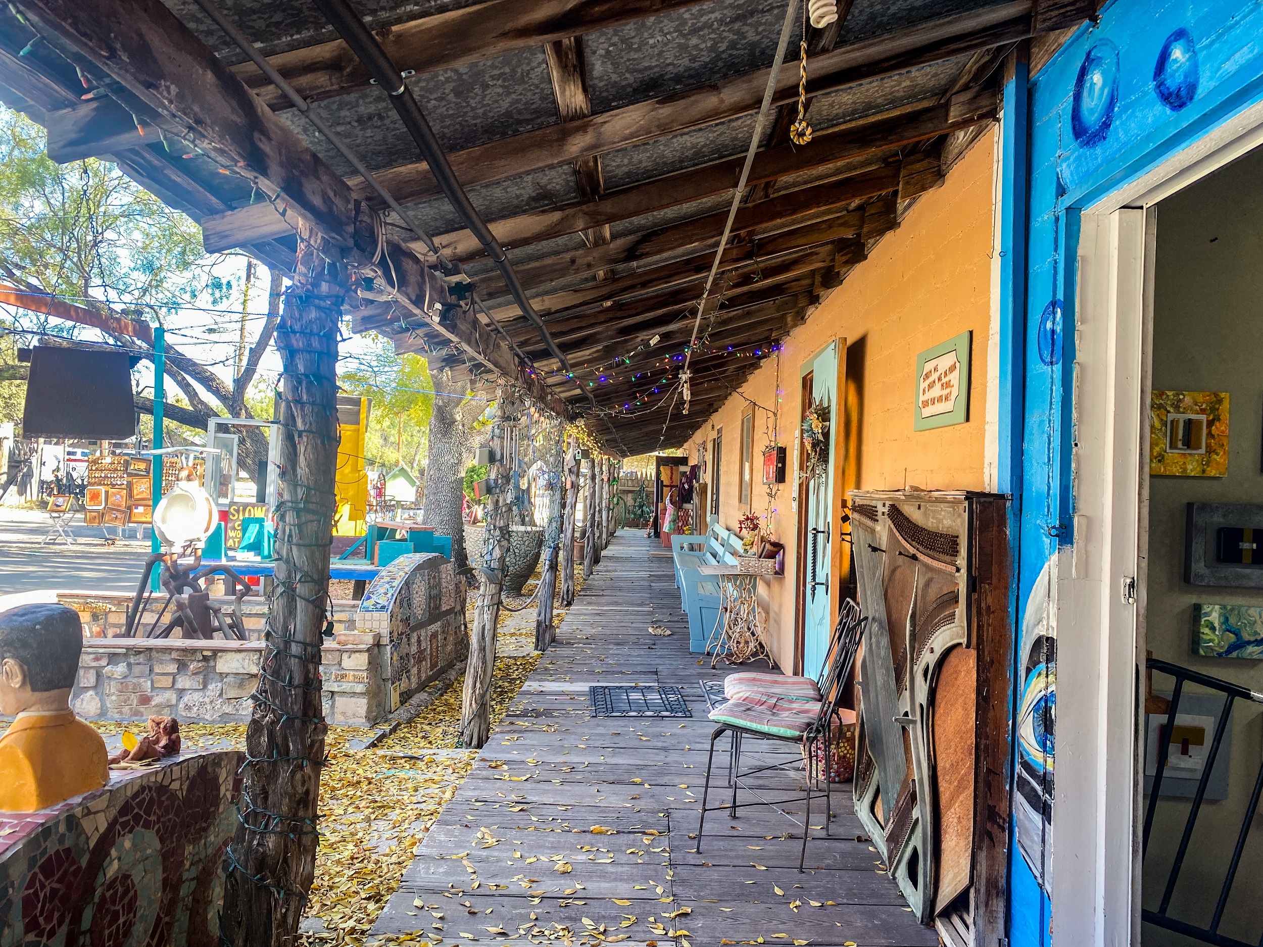 I stopped one night on the way to New Mexico in San Angelo, at the Chicken Farm Art Center. It’s a really cool “mixed-use development” (to quote directly from their website: https://www.chickenfarmartcenter.com) where artists and makers can rent space to make and/or sell their products. They also maintain a bed-and-breakfast with several single rooms or suites (I booked through Airbnb but they also have a website: https://www.innattheartcenter.com), and they have a restaurant that serves amazing food. And did I mention it was once a chicken farm? The Art Center started in the 70s when a former high school art teacher and a couple of partners bought the vacant former chicken farm and gradually turned it into a series of studios and apartments where artists could rent space to live and work.
